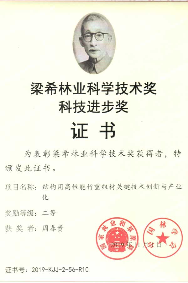 《輕質(zhì)高強(qiáng)無(wú)限接長(zhǎng)重組竹材料》金獎(jiǎng)